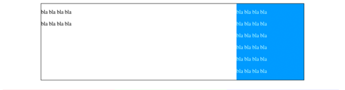 #container { background-color: #fff; overflow: hidden; width: 780px; margin: 10px auto 5px auto; border: 1px solid #000; } #content { background-color: #fff; width: 580px; border-right: 200px solid #0099FF; /* ancho y color del menú */ margin-right: -200px; float: left; } #menu { width: 200px; float: left; color: #fff; background: #0099FF; text-align: left; }